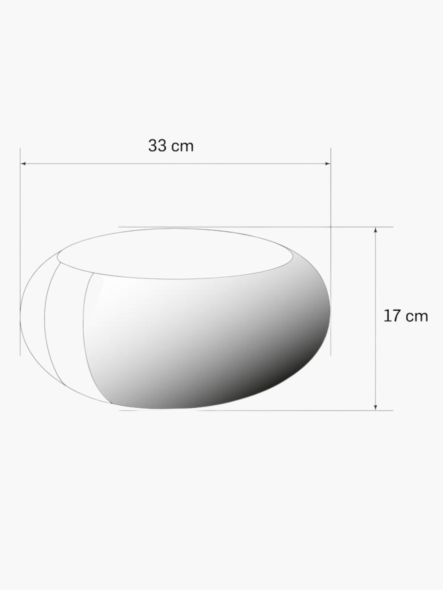Storlek: 33 cm Ø, 17 cm hög, 100 % japanskt bomullstyg, fyllt med 100 % naturlig kapok. Levereras med en textilväska med snören.