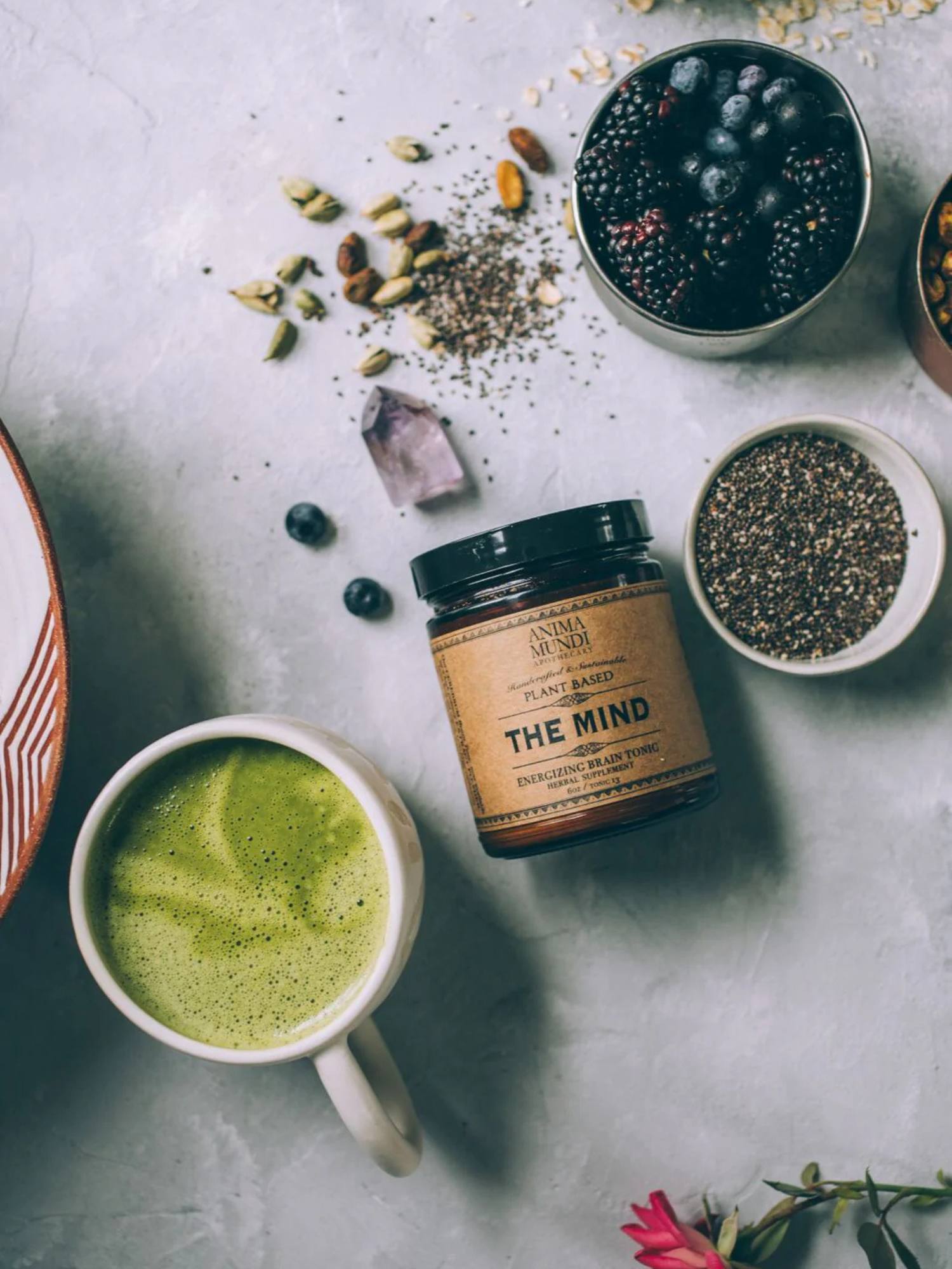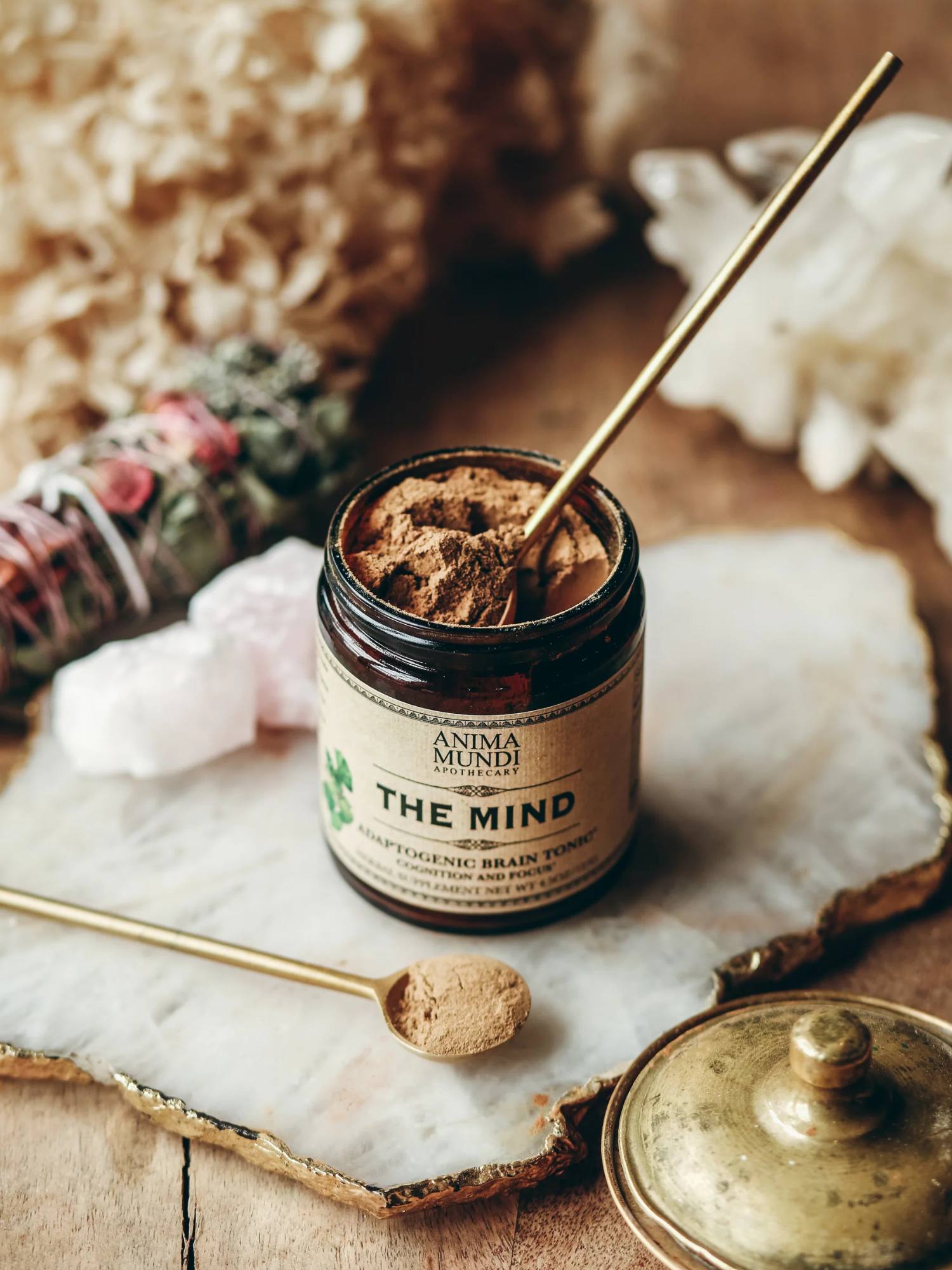 Adaptogen örtblandning för mental klarhet. The Mind är en koncentrerad växtbaserad tonic med adaptogena örter och funktionella svampar som traditionellt använts inom ayurvedisk, kinesisk och sydamerikansk örttradition. Blandningen är framtagen för att stödja fokus, klarhet och ett balanserat sinne i vardagen.