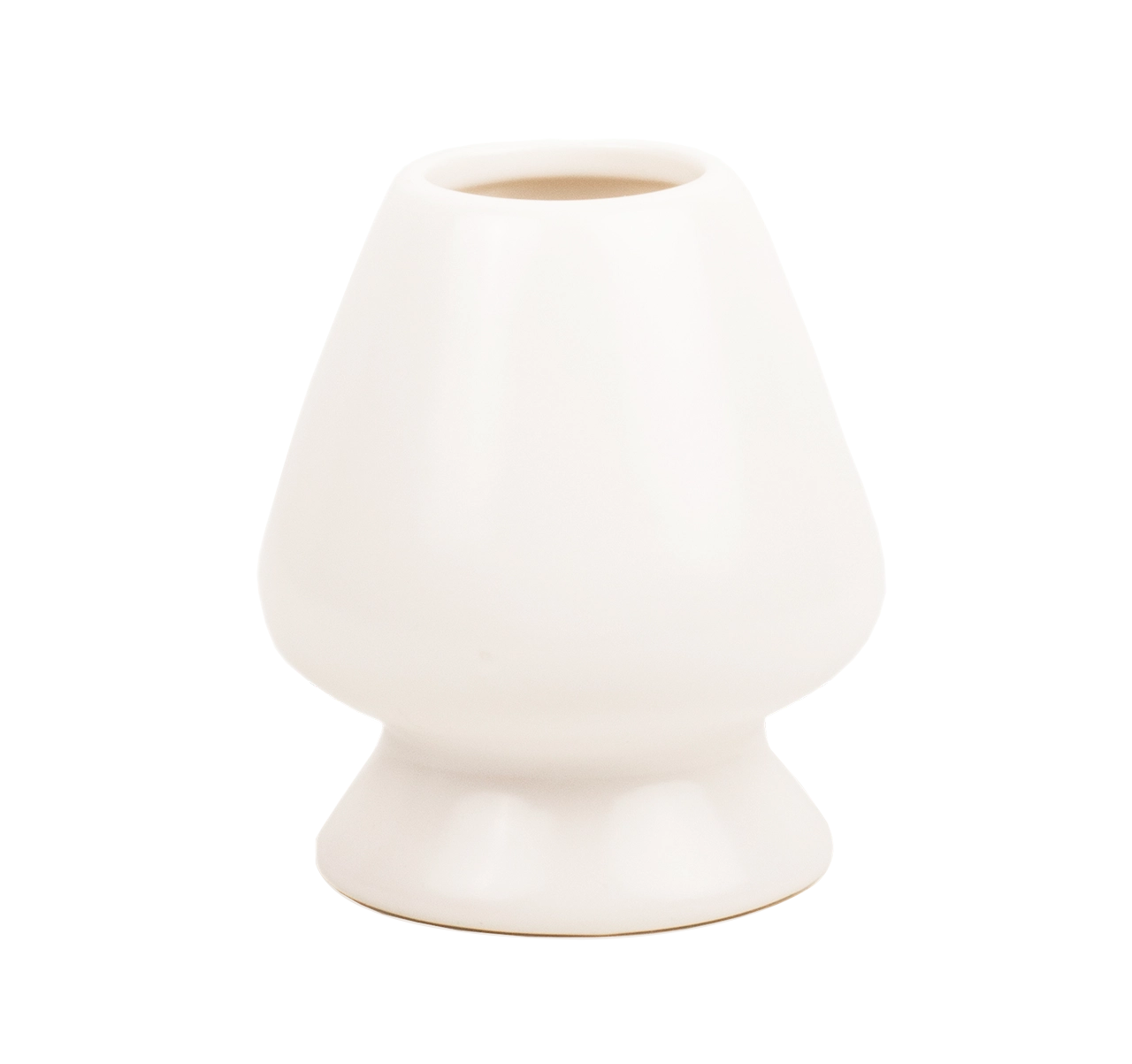 Matchavisphållare handgjord i keramik. Färgen är en pärlvit och krämig vit kombinerad med en glansig finish. Matchavisphållaren (Chasen Yasume) på japanska används för att bevara formen på matchavispen. Med hjälp av formen möjliggörs bättre luftcirkulation och mögelbildning på matchavispan undviks.