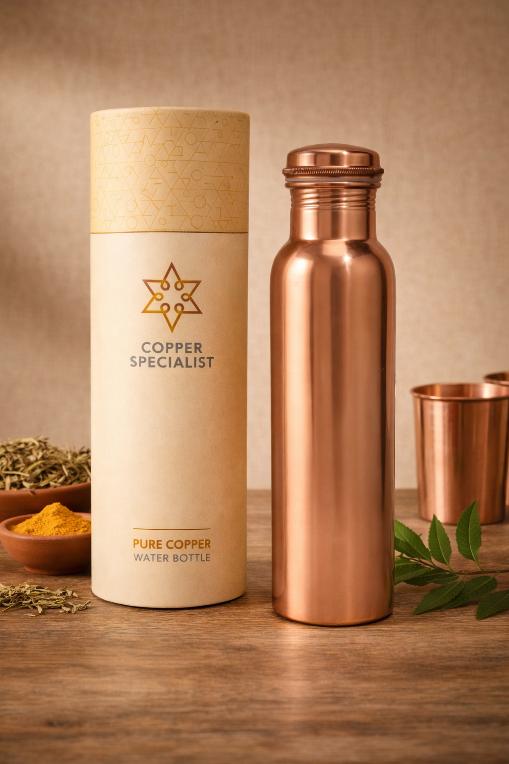 Bruksanvisning: Traditionellt sett fylls koppardricksflaskan med vatten på kvällen och lämnas över natten. Nästa dag kan kopparvattnet drickas.